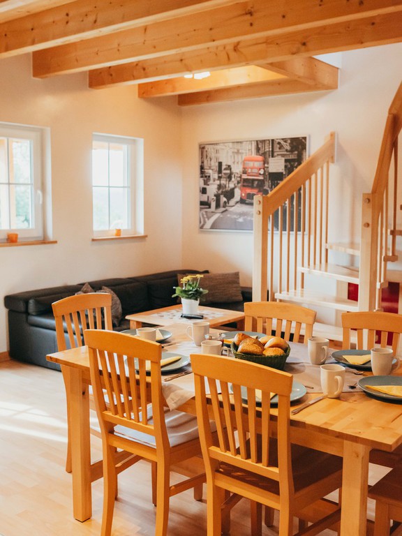 Die beiden Wohnungen sind jeweils 85 m² groß und verfügen über einen modern eingerichteten Wohn-/Eßraum mit voll ausgestatteter Küche, Sitzecke mit Sofa und SAT-Fernseher mit DVD-Player.