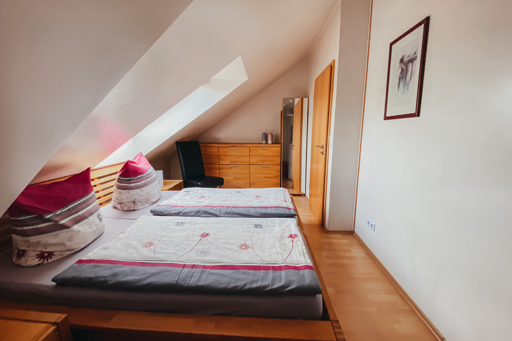 Zwei Doppelschlafzimmer und ein Zweibettzimmer mit der Möglichkeit 2 weitere vollwertige Betten zuzustellen, bieten Platz für bis zu 8 Personen je Wohnung.