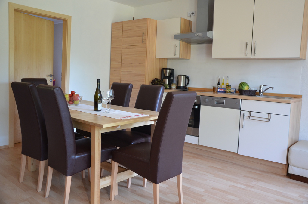 Die Wohnung ist 75 m² groß und verfügt über einen modern eingerichteten Wohn-/Eßraum mit voll ausgestatteter Küche, Sitzecke mit Sofa und SAT-Fernseher mit DVD-Player.